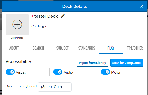 You can check your deck's accessibility from your Deck Details in the Play tab using the Scan for Compliance button!