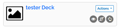 There are 3 badges that correspond to each way a deck can be accessible. The first badge, an eye, corresponds to Visual accessibility. The second badge, an Ear with a slash, corresponds to decks with Audio accessibility. The third badge, a cursor, corresponds to Motor accessibility.